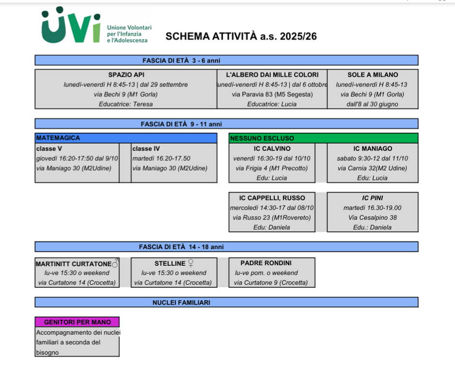 Ecco uno schema riassuntivo di tutte le attività previste per l’anno scolastico 2025/2026.